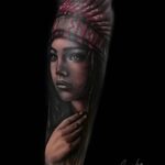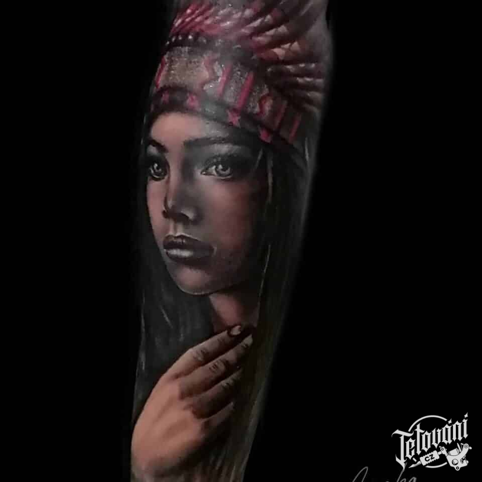 Tetování portrét indiánky na předloktí
