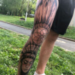 Tetování portrét indiánky, ornament na noze