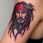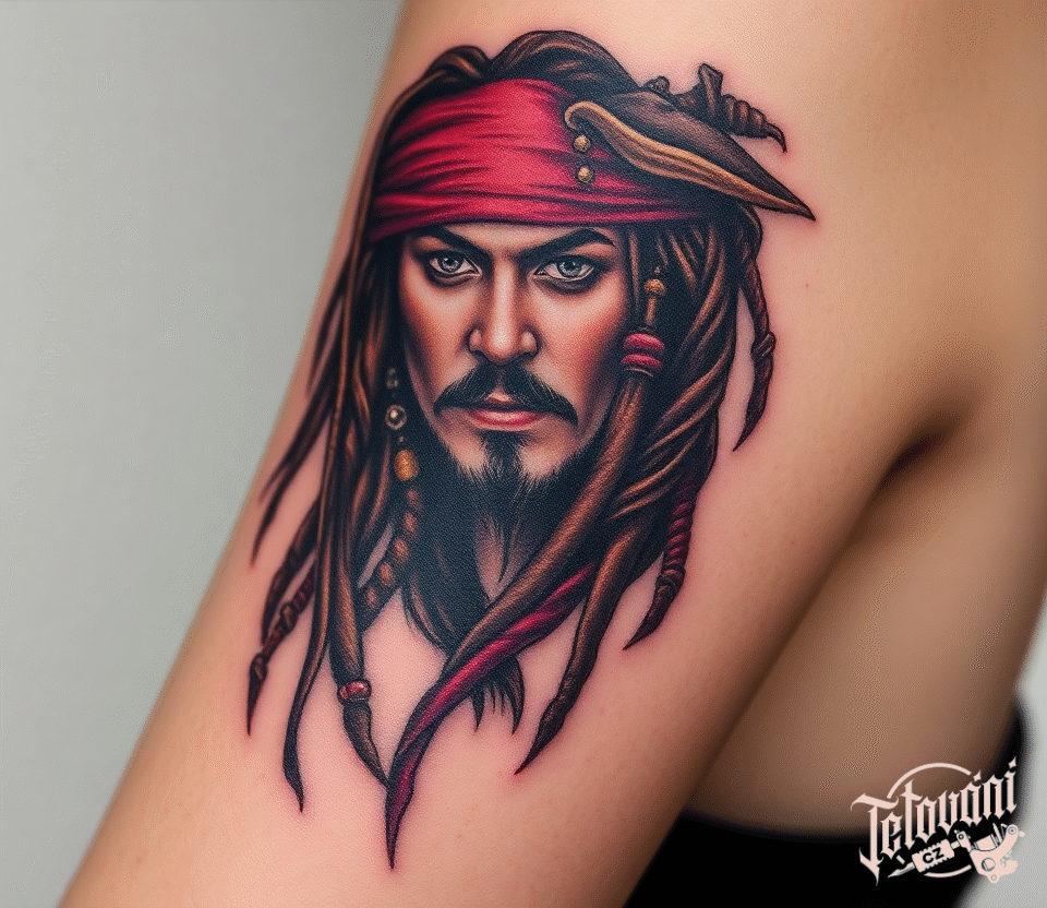 Tetování portrét Jacka Sparrowa na rameni