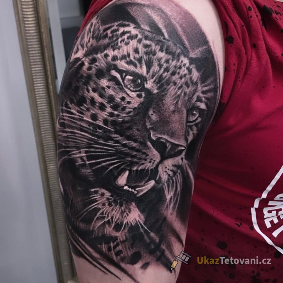 Tetování portrét jaguár na rameno
