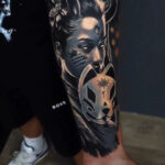 Tetování portrét, japonská ďáblice s maskou na předloktí