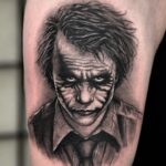 Tetování portrét Jokera z filmů a pohádek na rameno