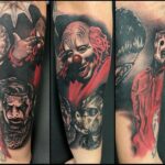 Tetování portrét Klaun z filmů a pohádek, masky na předloktí