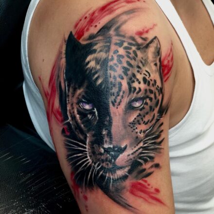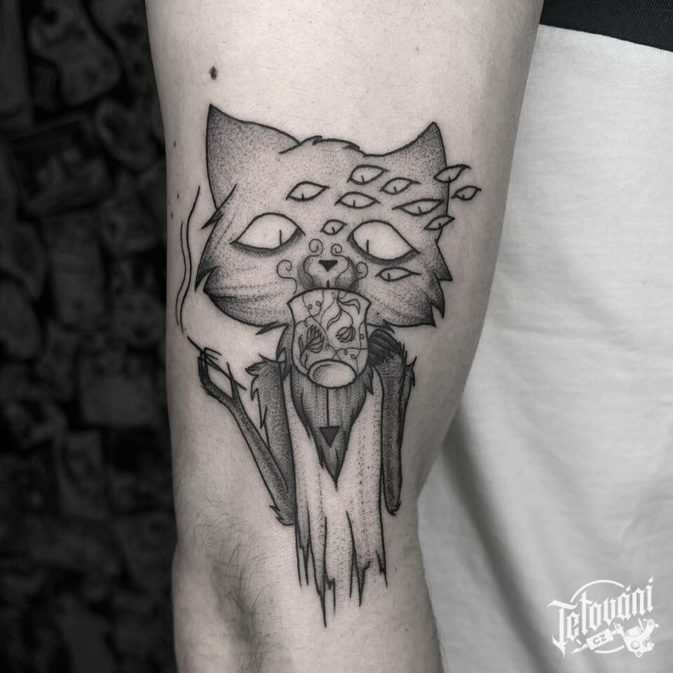 Tetování portrét, kočka, zvíře, symbol na rameno