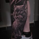 Tetování portrét kočky na lýtko
