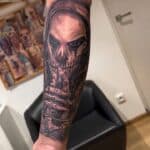 Tetování portrét kostlivec na předloktí
