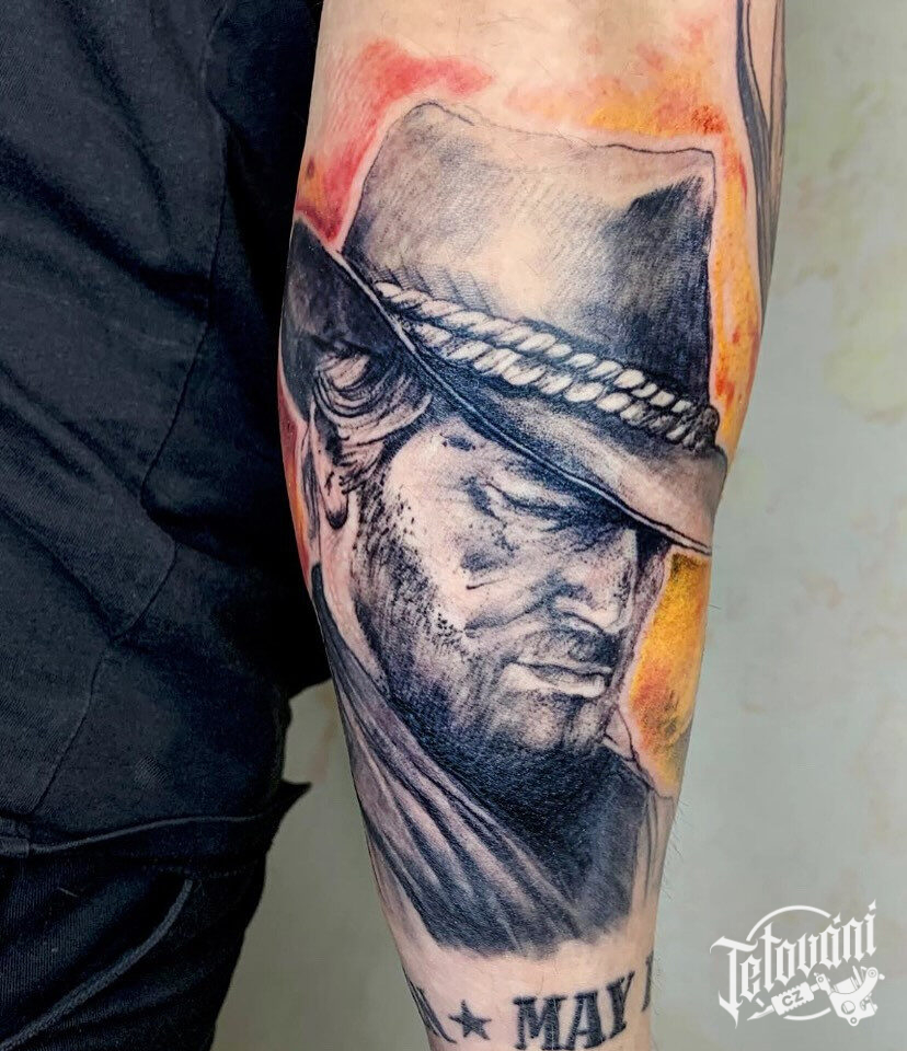 Tetování portrét kovboje na předloktí