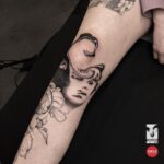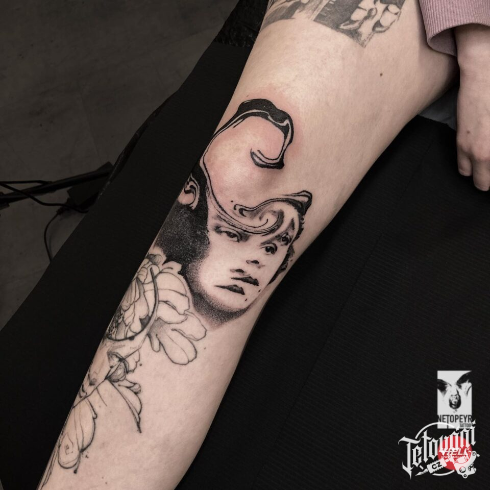 Tetování portrét, květiny na předloktí