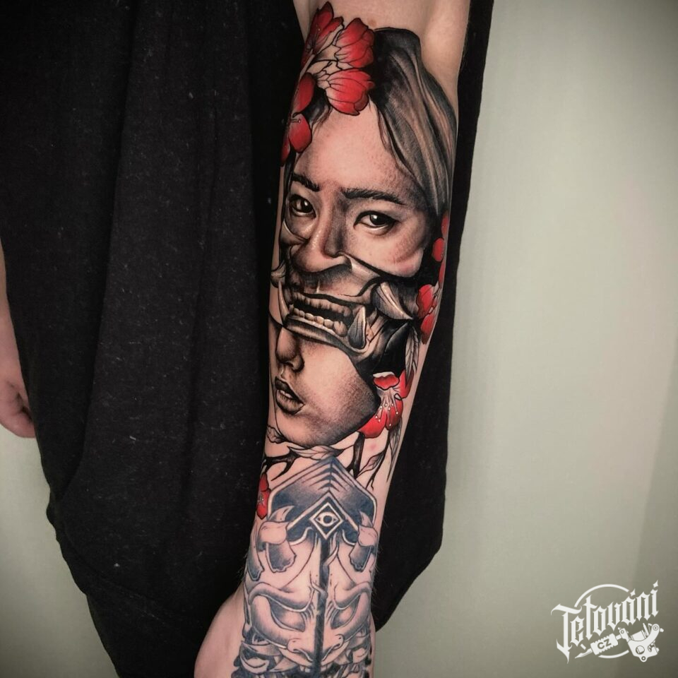 Tetování portrét, květiny na předloktí