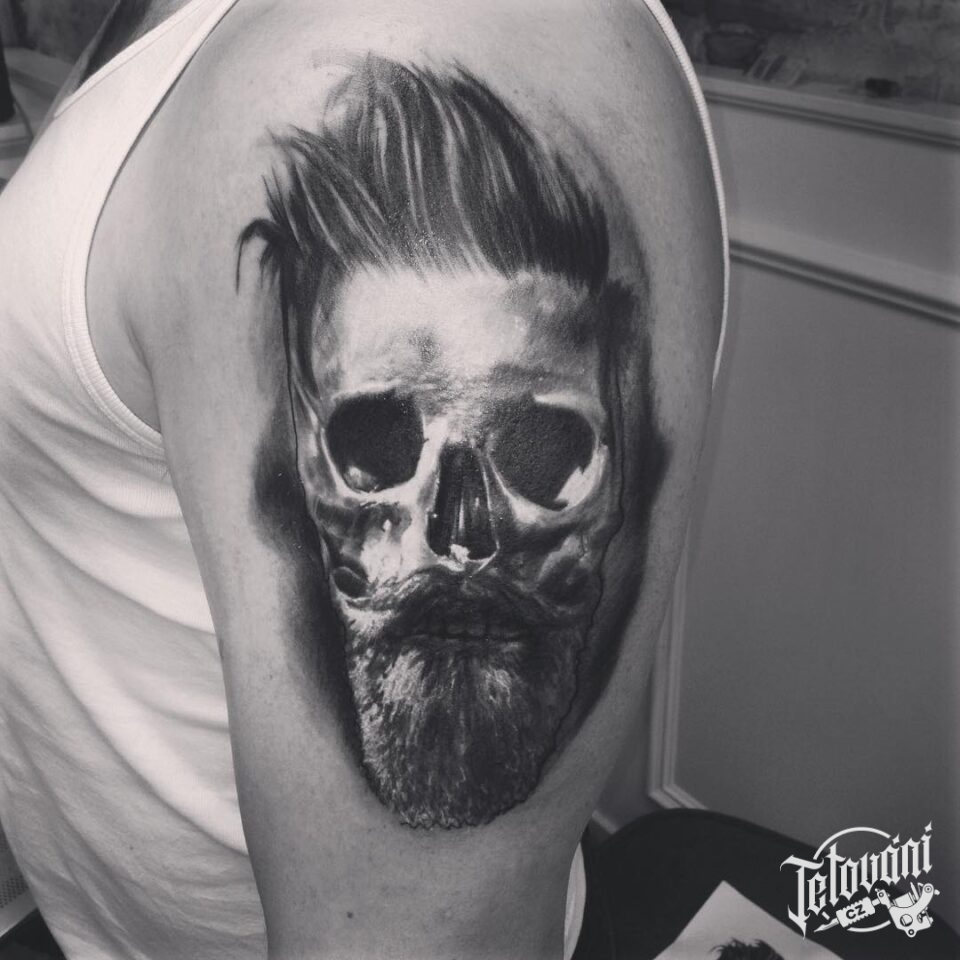 Tetování portrét lebka na rameni