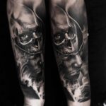 Tetování portrét, lebka, symbol na předloktí