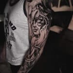 Tetování portrét, lebka zvířete, ptáci na rukávu