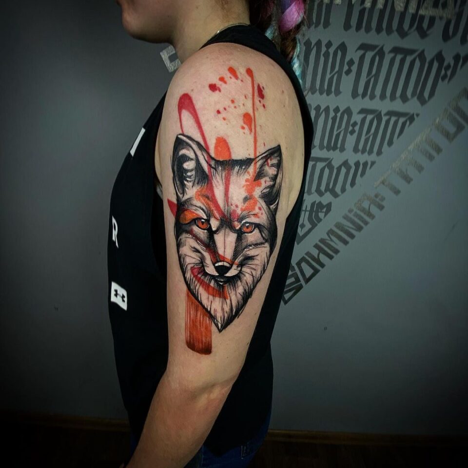 Tetování portrét lišky na rameno