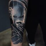 Tetování portrét, lupič s maskou na předloktí