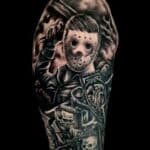 Tetování portrét masky, lebky, znaky a symboly na rameno