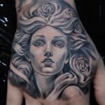 Tetování portrét Medúzy na hřbetu ruky