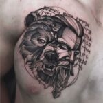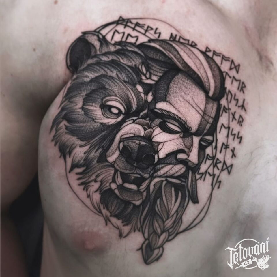 Tetování portrét medvěd, bojovník na prsu