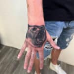 Tetování portrét medvěda, zvíře na hřbet ruky