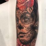 Tetování portrét Muerte, květina růže na předloktí