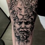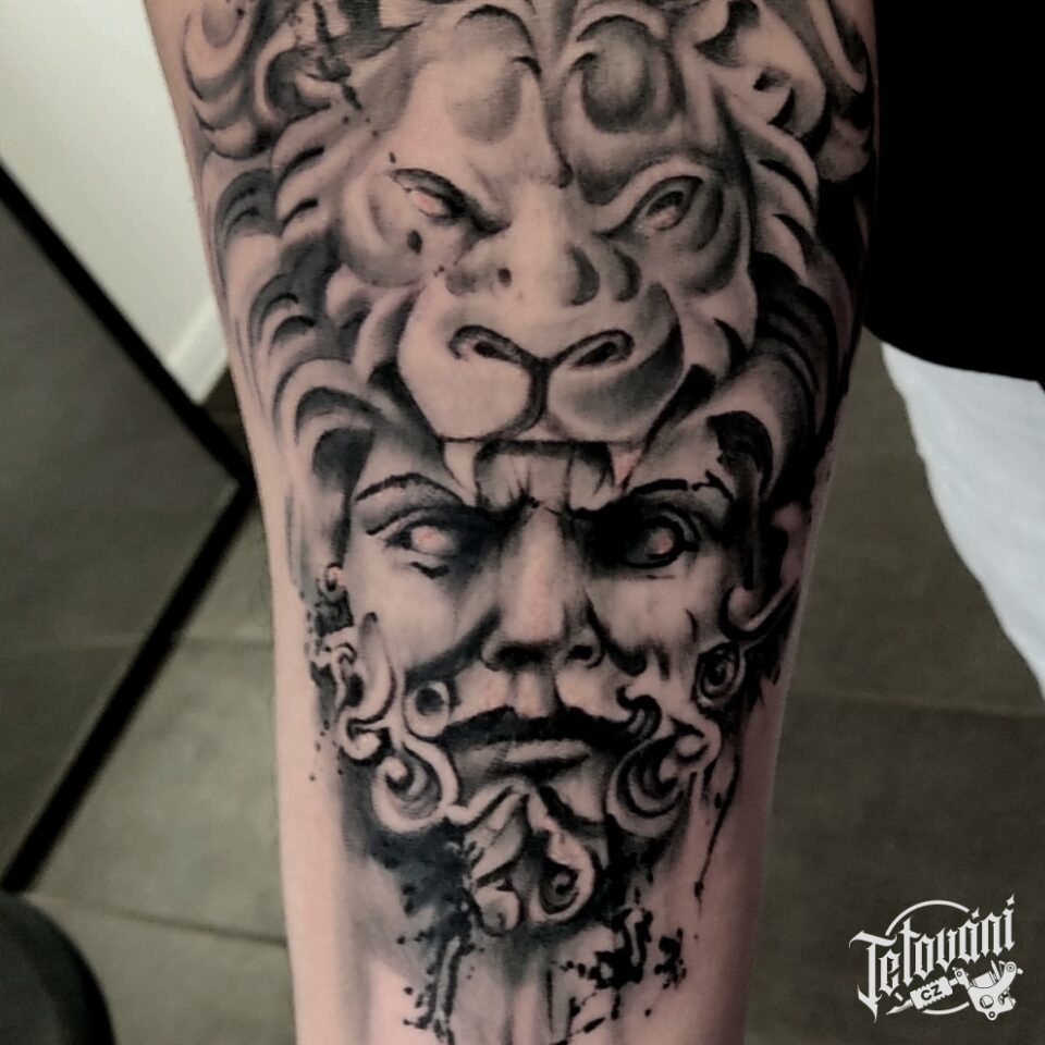 Tetování portrét může a lva, zvíře na rameno