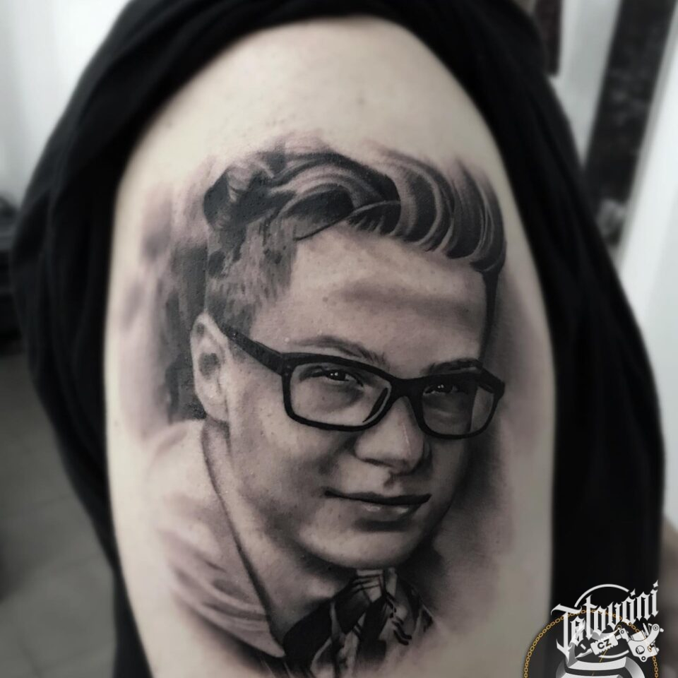 Tetování portrét muže na paži
