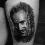 Tetování portrét muže na stehnu