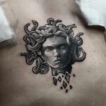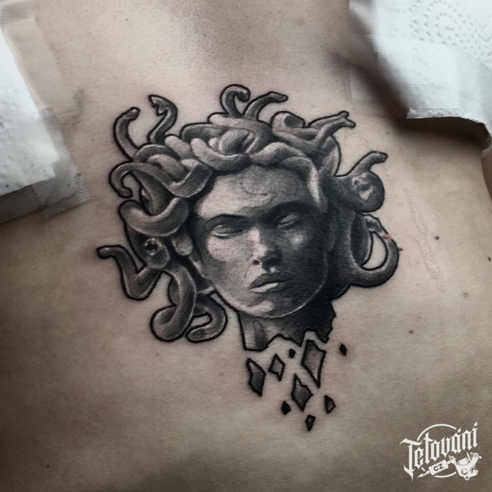 Tetování portrét, mýtická bytost, hadi, zvíře na záda