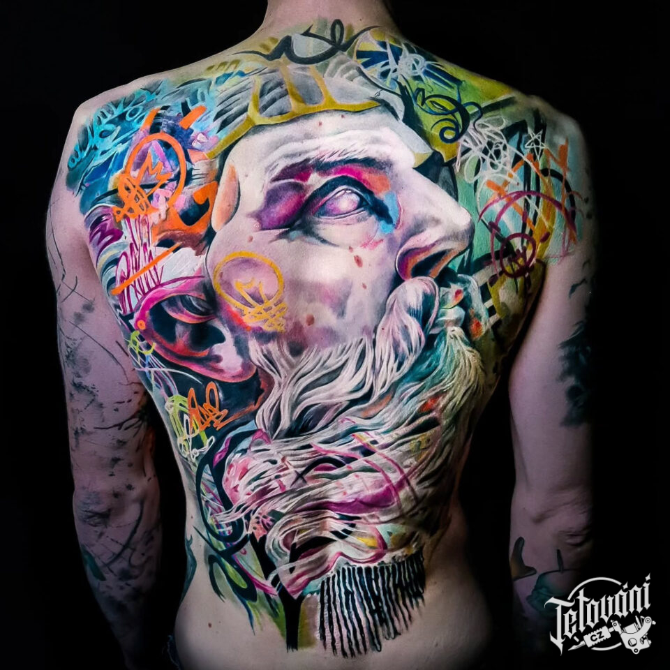 Tetování portrét mýtické bytosti na zádech