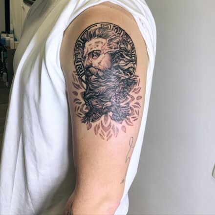 Tetování portrét, mýtické bytosti, Zeus na předloktí