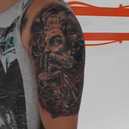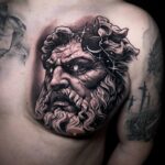 Tetování portrét mýtické bytosti, Zeus na prsa
