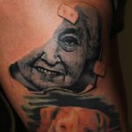 Tetování portrét na bok stehna