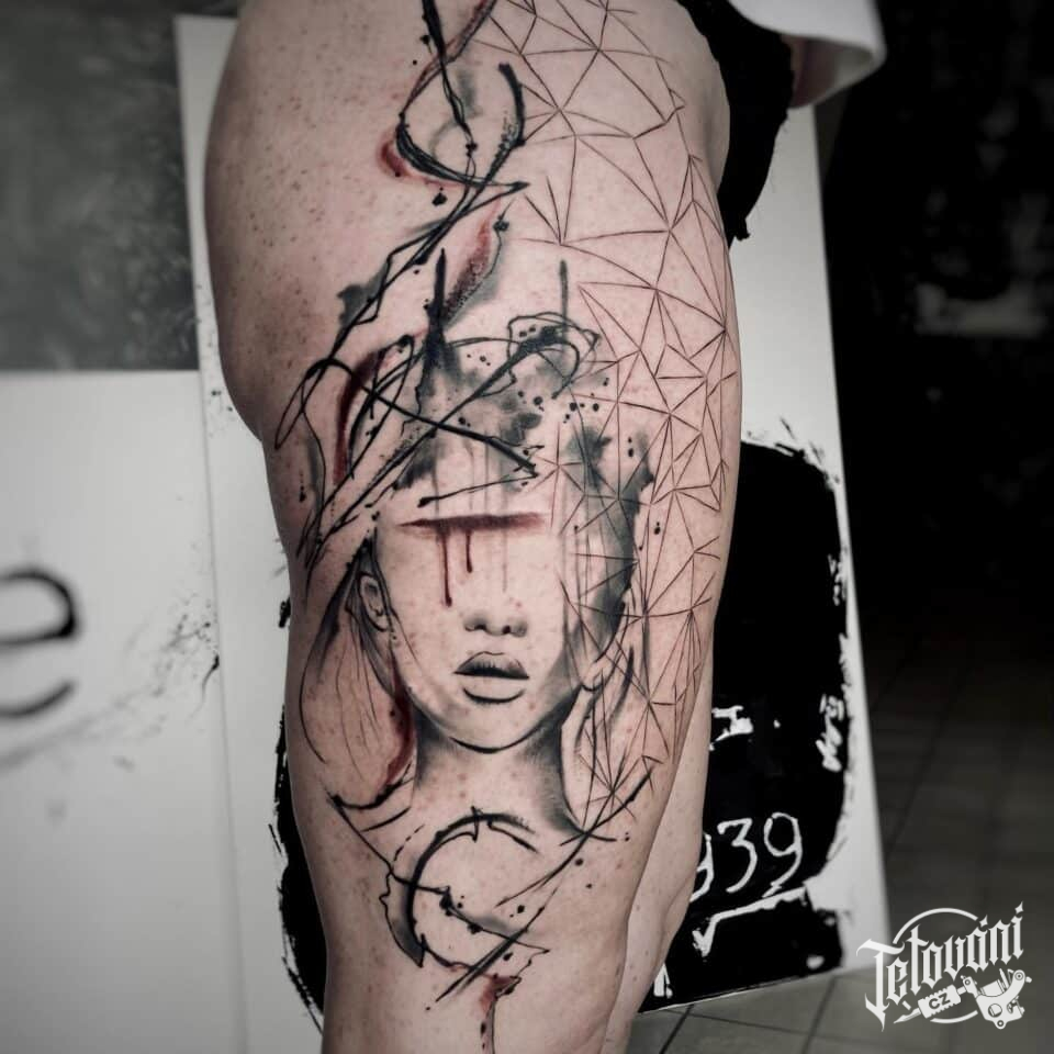 Tetování portrét na bok stehna