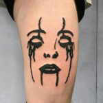 Tetování portrét na boku stehna