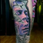 Tetování portrét na boku stehna