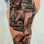Tetování portrét na boku stehna