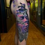 Tetování portrét na boku stehna