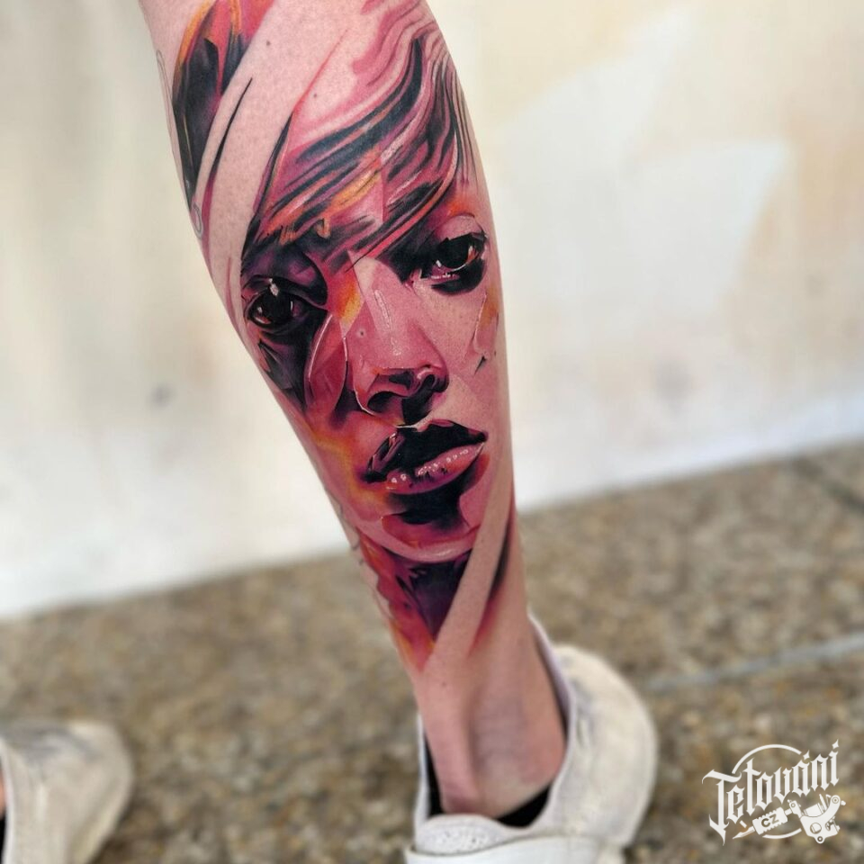 Tetování portrét na holeň