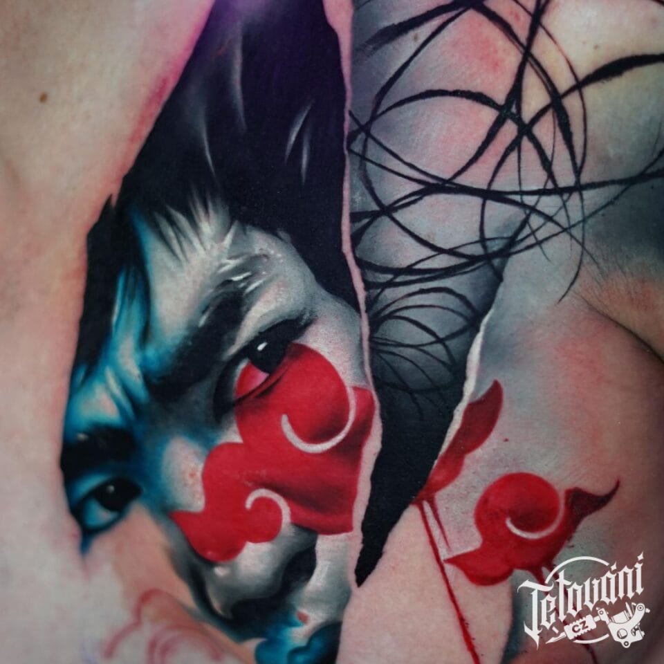 Tetování portrét a čáry na hrudníku