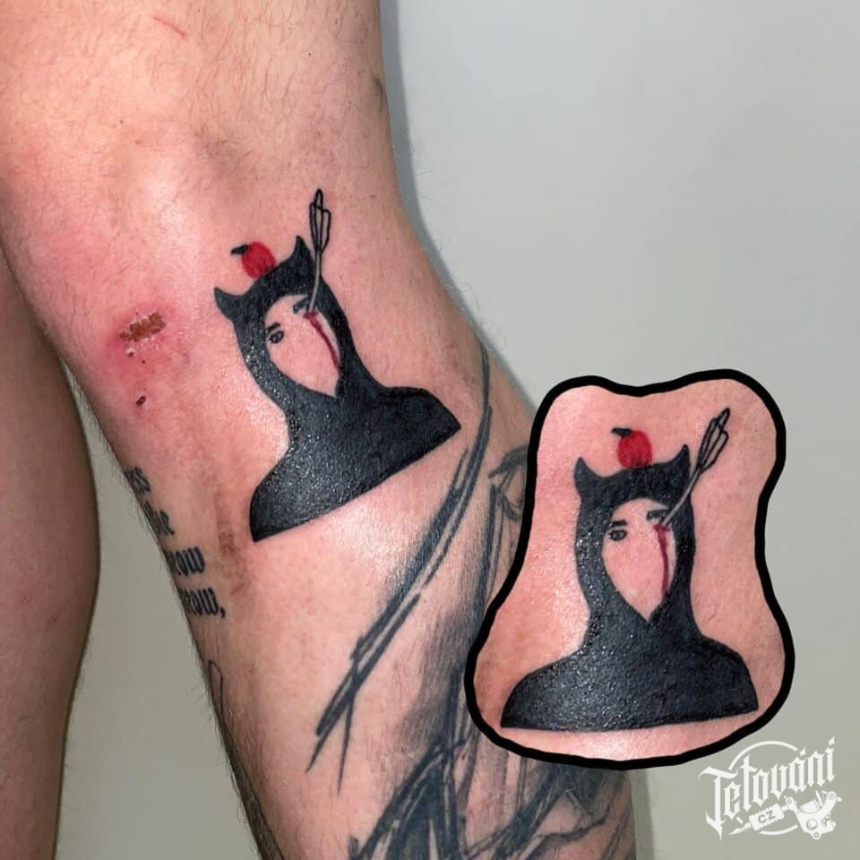 Tetování portrét na koleni
