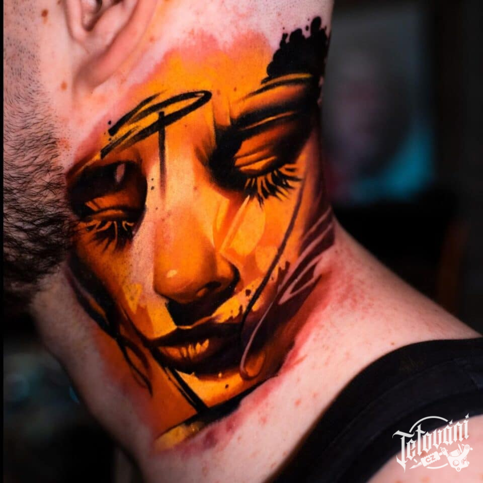 Tetování portrét na krku