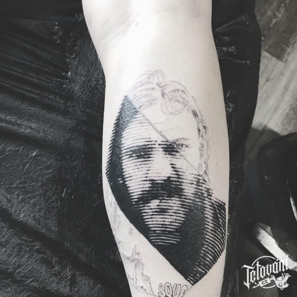 Tetování portrét na lýtko