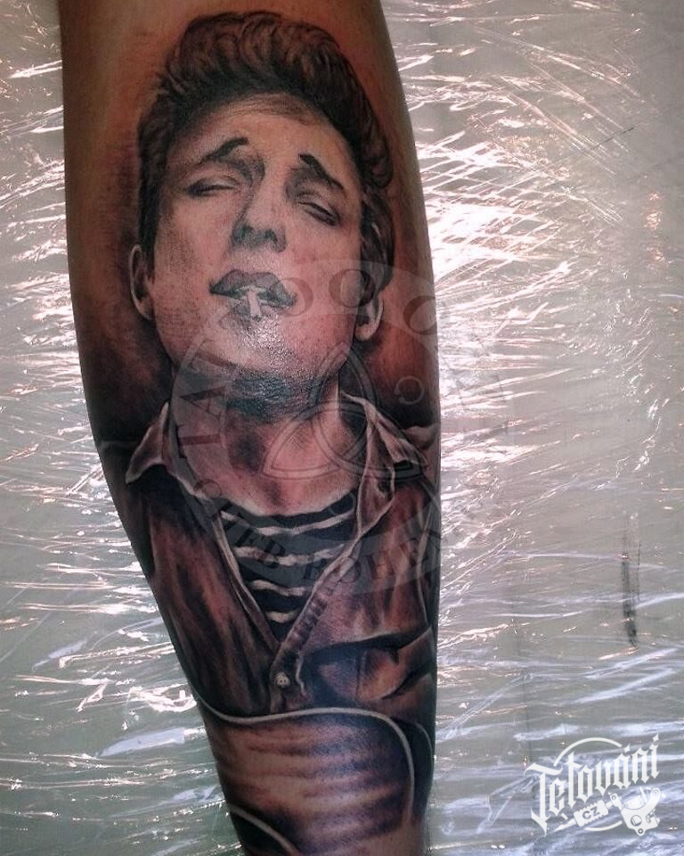 Tetování portrét na lýtko