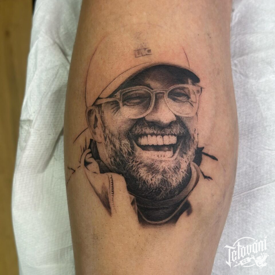 Tetování portrét na lýtko