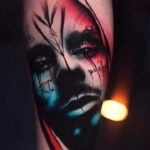 Tetování portrét na lýtku