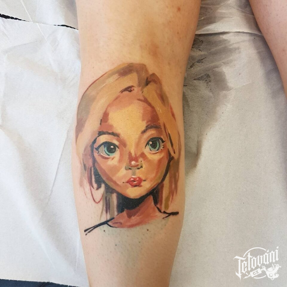 Tetování portrét na lýtku