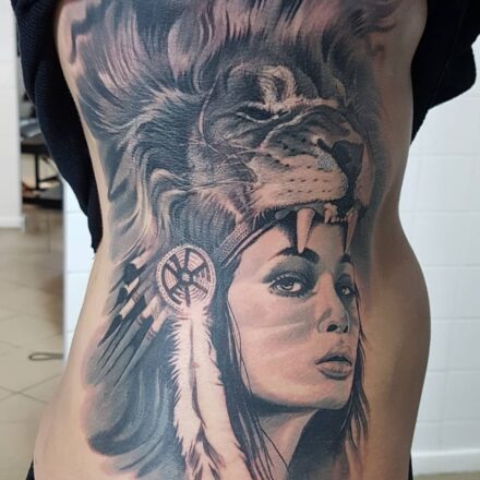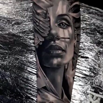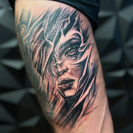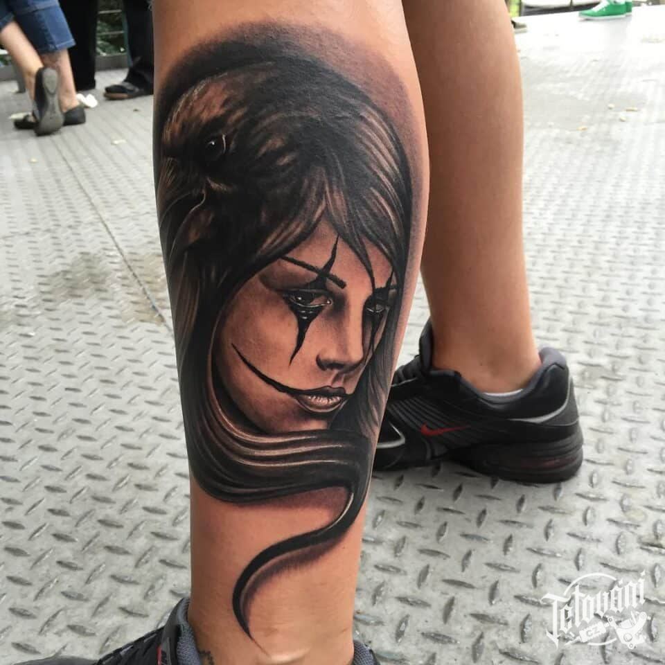 Tetování portrét na lýtku