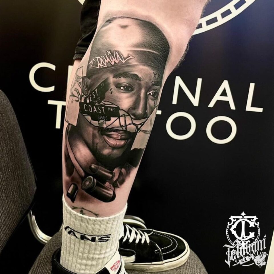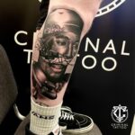 Tetování portrét na lýtku