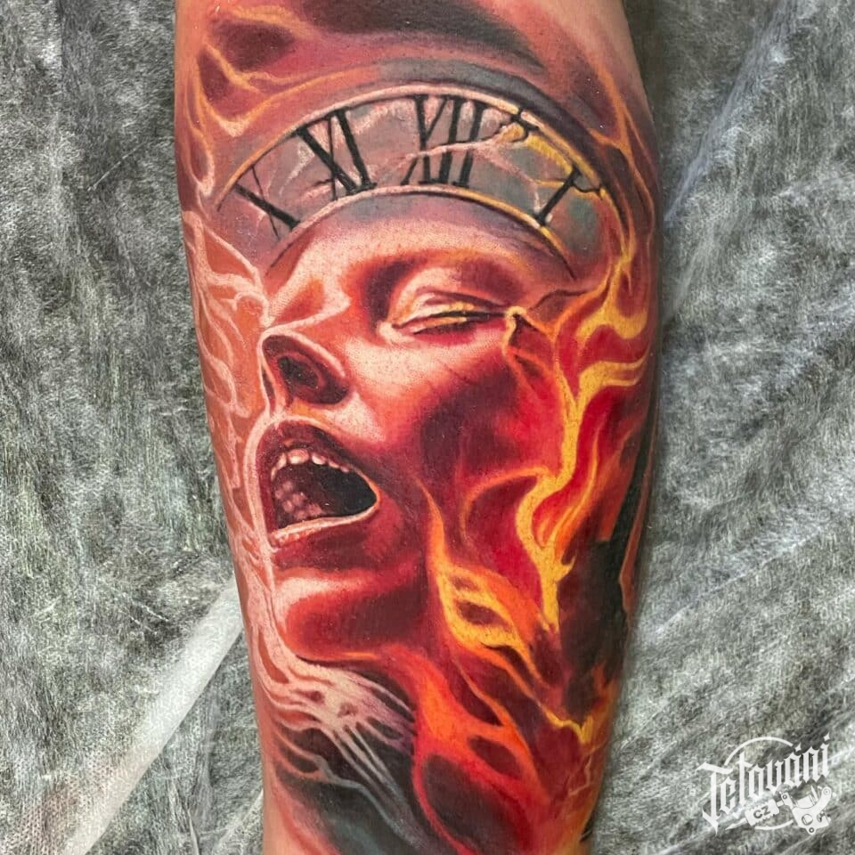 Tetování portrét na lýtku