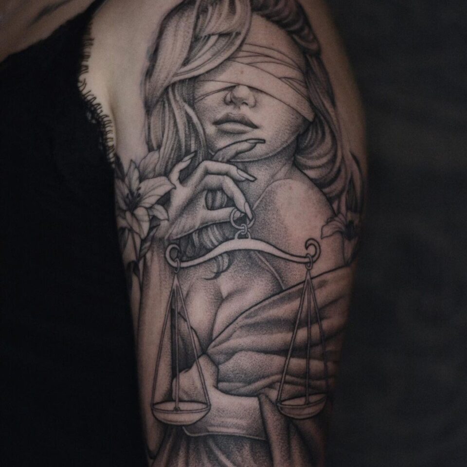 Tetování portrét znamení zvěrokruhu Váhy na rameni