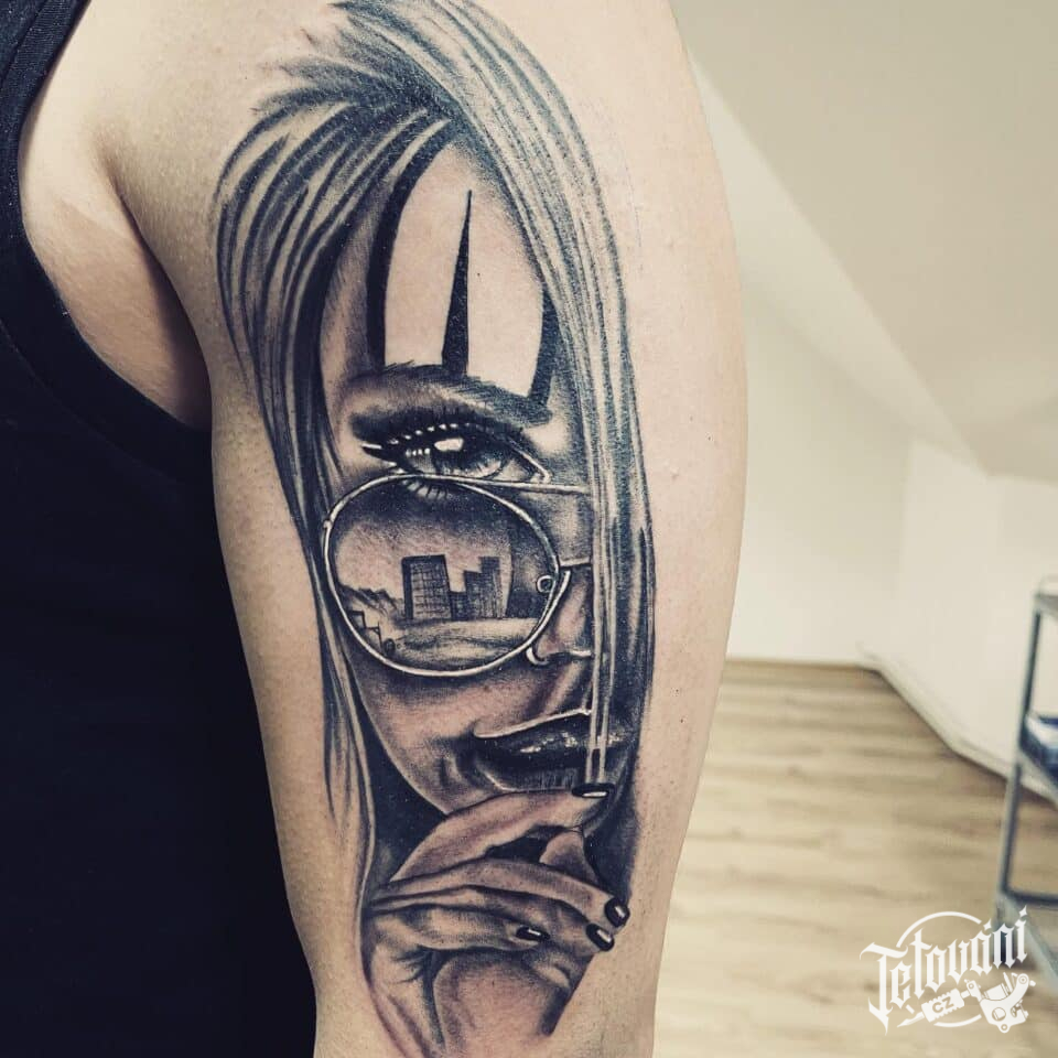 Tetování portrét na rameno